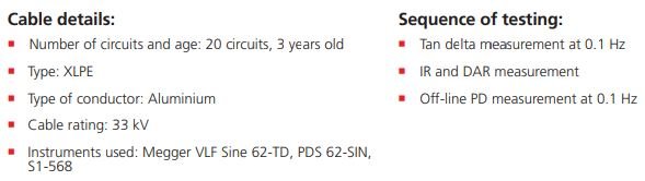 As the high reliability of the MV network is critical, to reduce loss of revenue due to a power outage, the power utility decided to carry out a condition assessment on all MV cable circuits within the two solar power plants. The assessment included insulation resistance measurement (IR), dielectric absorption ratio (DAR), tan delta measurement (TD), and partial discharge analysis (PD). The work to carry out the condition assessment of the cable was awarded to Megger India, based on its technical knowledge and experience.