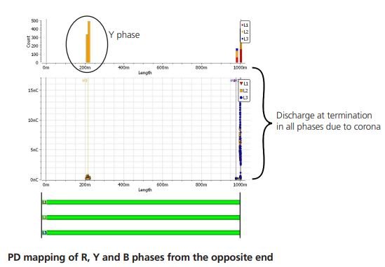 The customer wanted to confirm this location by performing PD diagnostics from the opposite end. The additional measurement confirmed the first findings.