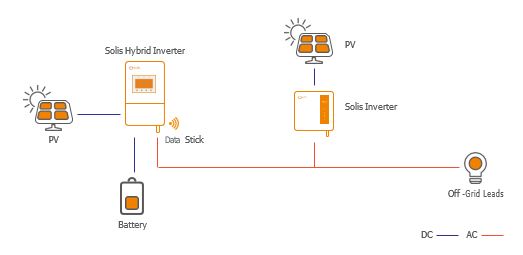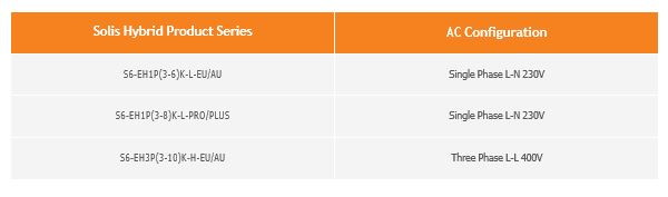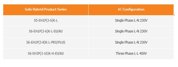 Single-phase 230V L-N hybrid inverter works with single-phase 230V L-N PV inverter. Three-phase 400V L-L hybrid inverter works with three-phase 400V L-L PV inverter.